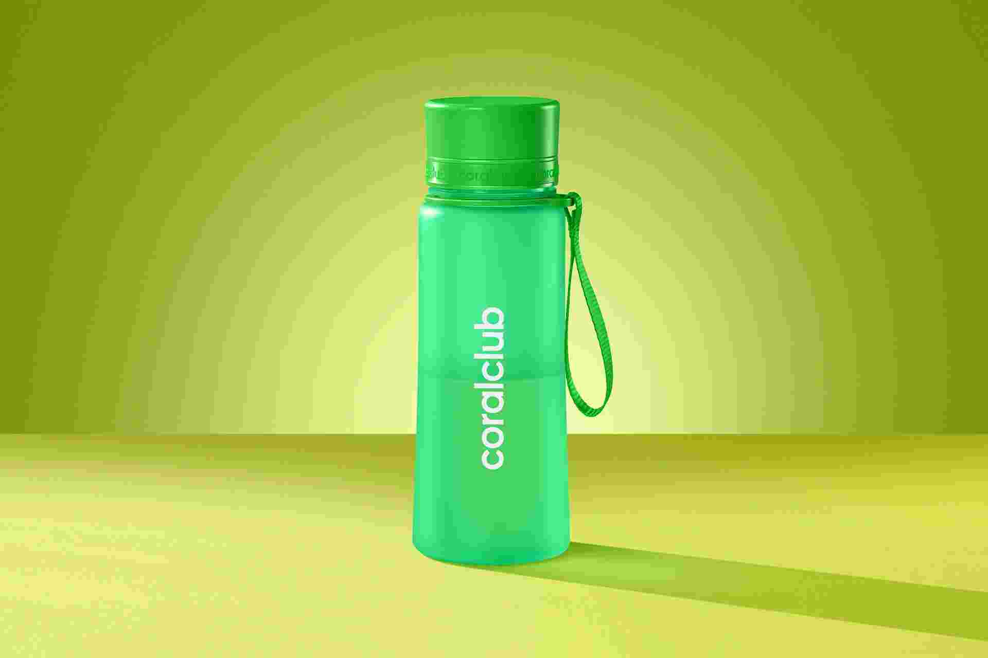 Patvarus, ekologiškas ir lengvas Coral Club butelis puikiai tinka kelionėms, pasivaikščiojimui ar sportui.