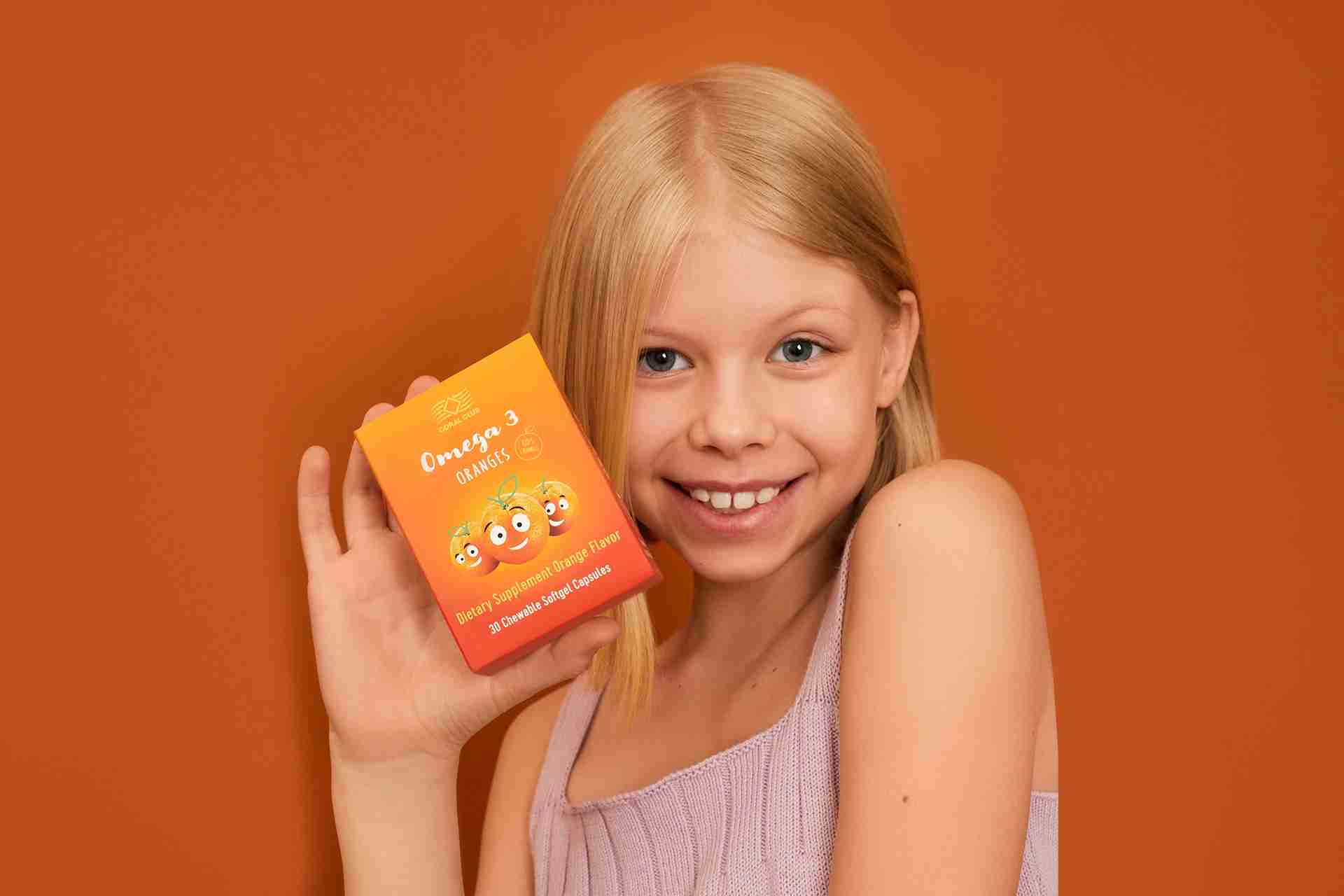 Sudedamosios dalys: žuvų taukai, kapsulės apvalkalas (drėgmę išlaikanti medžiaga glicerolis, želatina, pakeistų savybių kukurūzų krakmolas, vanduo, natūrali apelsinų kvapioji medžiaga, pakeistų savybių manijokų krakmolas), natūrali apelsinų kvapioji medžiaga.